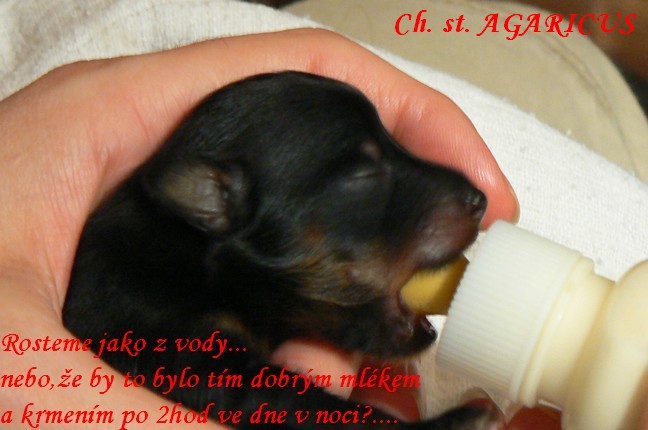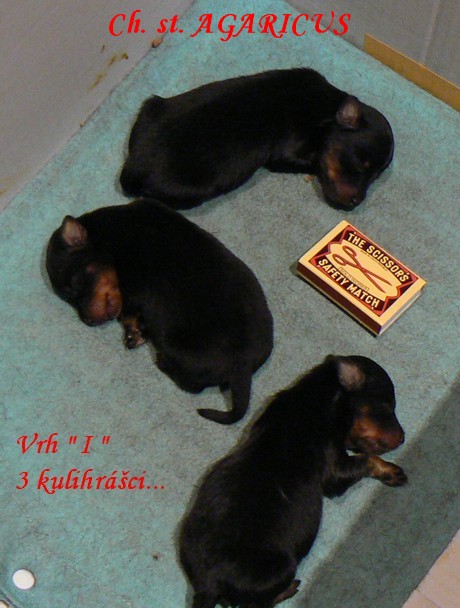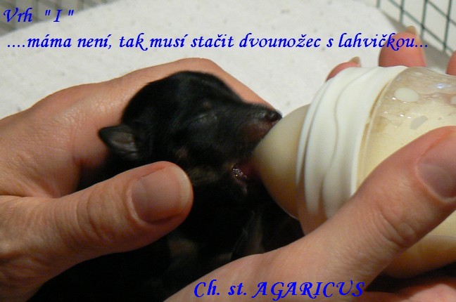 Tento vrh jsme velmi prožívali. Klukům byly dva dny a zenřela maminka Nella - Hanelle Agaricus, díky špatné péči veteriny Český Brod. Nám kromě žalu zůstali 3 sirotci. Stálo to hodně péče a úsilí, ale zachránili jsme je. Také díky velké pomoci jejich babička Cindy ( Cinderella Agaricus ), která je po sedmi dnech přijala a začala ošetřovat. Na mne zbylo "už jen" krmení. Dnes jsou to tři fešáci, 2 v chovu a jeden jako rodinný miláček.